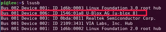 In the output, you should look for something named like U-Blox AG [u-blox